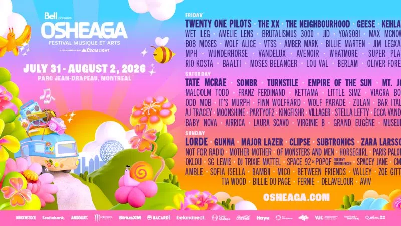 The Osheaga 2026 lineup is stacked with an epic mix of headliners like Twenty One Pilots, Tate McRae and Lorde alongside genre-spanning acts such as The xx, Gunna, Major Lazer, Franz Ferdinand and more, making this three-day music celebration at Parc Jean-Drapeau one of the summer's can't-miss events. Tickets go on sal...