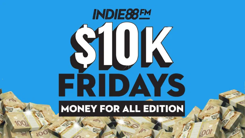 10 thousand dollars... We're giving away so much money to so many people, our wrists are sore from filling out all these huge novelty cheques! Indie 88's 10K Fridays - Money For All Edition. So many Fridays, so many winners! Listen to Indie88 starting Friday, every day, from 6am to 8pm for the hourly code word. When y...